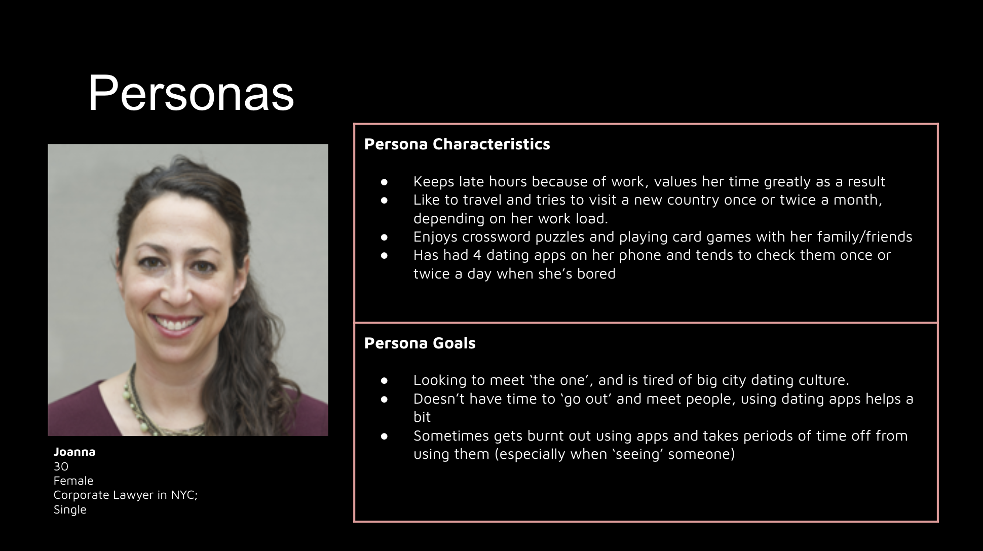 Personas can help us determine the kinds of users we might encounter to help us figure out how we might create our app and implement its features. From our personas we look to synthesize what people want to find through using our app.